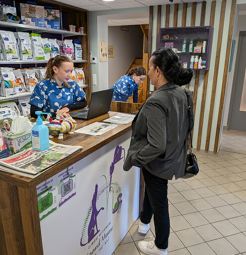 Dans une ambiance bienveillante et apaisante, nous vous accueillons pour tout type de consultation ou d’urgence vétérinaire, et restons à votre écoute pour vous conseiller sur la nutrition, l’hygiène et les produits adaptés à votre animal.